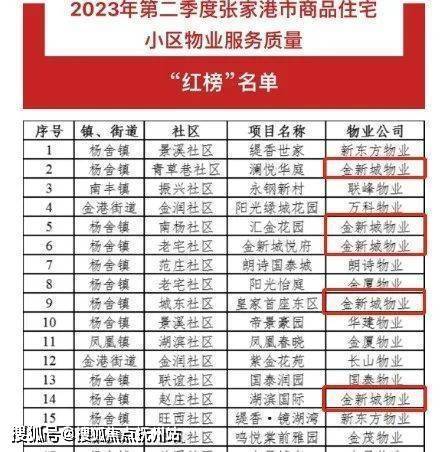 就在刚刚公布的“张家港商品住宅小区二季度红黑榜”中,金新城物业服务的 9个小区位列红榜 , 0个黑榜 ; 金新城物业是上榜红榜数量第一的物业公司 。