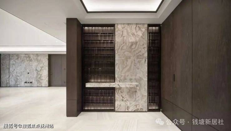 推开房门的刹那,尊贵感更是油然而生,重工且精致的玄关背景墙,审美调性也很高。