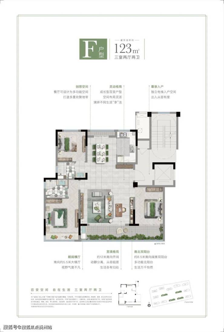 其中,湖上云庭建面约123㎡户型更符合追求大空间的人居住。3室2厅2卫设计,南向约12米开间,阔绰尺度尽显人生格局,南向约5.5米大横厅,保留了可变空间。南向约8.5㎡双联阔景阳台+北向多功能阳台,无论赏景会客,饲养花草还是健身娱乐,都可以轻松实现生活里的“小确幸”。主卧套房式设计,独立专属卫浴,让起居更便利。