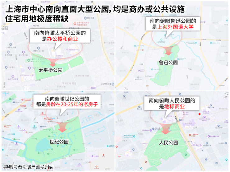 公园边界有限: 公园的周长是固定的,能真正“直面”公园(而非斜视、侧视、有遮挡)的土地面积极其有限
