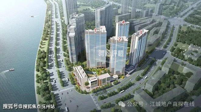 该项目一线临江,地块临江面为西面,且地块临江面很窄,住宅楼栋斜侧面对江。