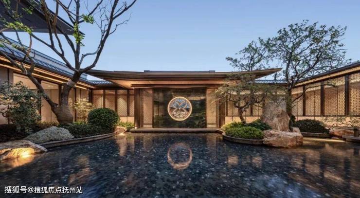 在宝格丽绿奢石屏风背后,是豁然开朗的约500㎡下沉水院。