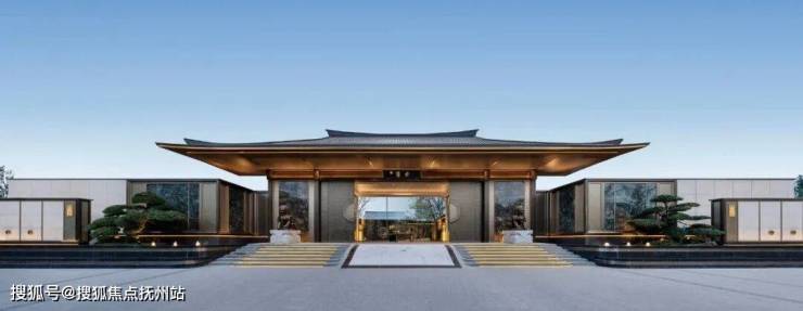 两侧层叠的迎宾水景从涌泉蔓延到石阶纹路。周礼中强调的对称和威仪,由两株青翠松柏、价值百万的蓝翡翠奢石和600斤重的威武铜狮分列在左右。
