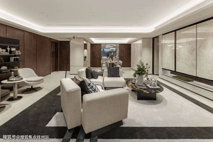 近年来,很多豪宅流行将架空层打造成社区泛会所功能,但是江山万里·玖曜的架空层,却将社区景观甚至水系融入到了它约4.9-8米挑高通透首层及单元入户大堂。