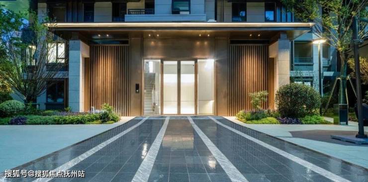 所有单元入户门采用仿铜不锈钢金属大门,门牌以金属立体字镶嵌于咖金色铝板之上。地面铺设采用拼纹工艺的高档地砖,将质朴的板面转化为家的温暖符号。这些细节在每日归家时刻唤醒居住者的尊崇感,让仪式感成为日常生活的一部分。