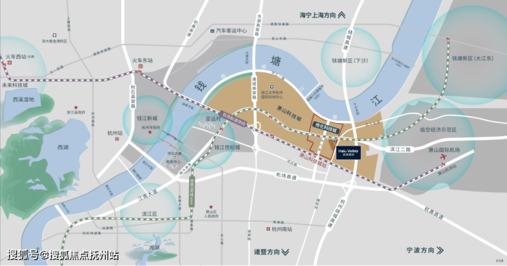 钱湾智谷以“开发时间”为视角,用高效的商务出行赋能企业发展,钱湾智谷拥有链接全球的空港网络、串连环杭州湾大湾区核心城市的立体式交通网,高效覆盖日常通勤、区域性商务与跨境商务需求,为企业节省了最昂贵的商务成本。