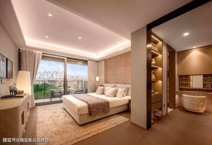 南向双联阳台更将这份奢适延伸至户外——与主卧相连的阳台以落地玻璃门隔断,晨起推窗,风裹着江潮的气息涌入;晚霞将双阳台染成粉橘,与光影对坐,品一盏茶的清润,惬意不过如此。