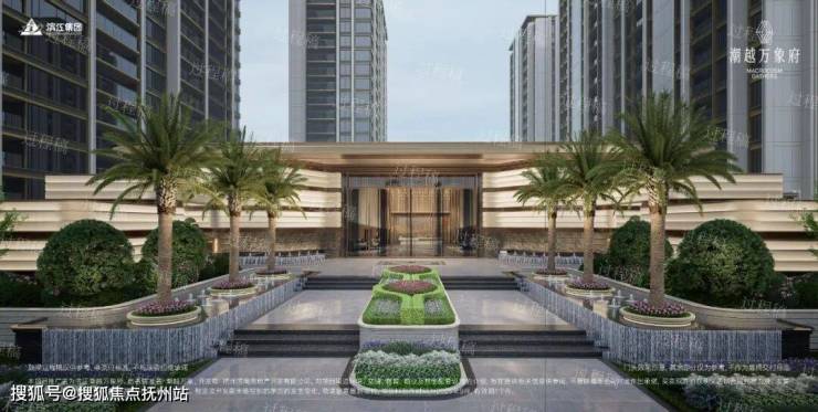 建筑之上,潮越万象府汲取迪拜地标酒店的国际潮流灵感,并与萧山开元大酒店大金顶辉映,让「金顶官檐」闪耀更具有现代锋芒与艺术质感的熠熠鎏光。景观之间,足足约37米馈赠的归家前场,只为以恢弘纵深的“棕榈殿堂”,在城芯换取一片烟火与隐逸并存的呼吸地带。