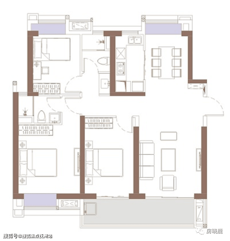全南户型,餐厅采光不足,南北不通透。