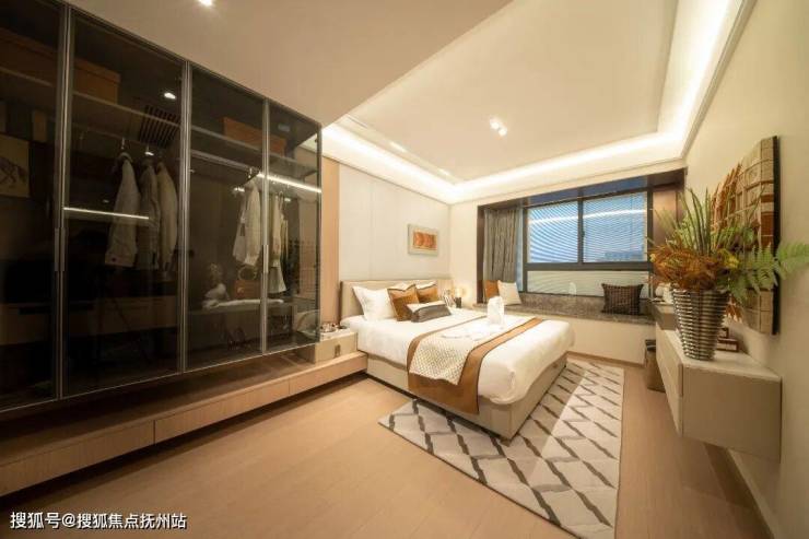 保利·时光印象约125㎡大三房最让人惊艳的是主卧套房布局。超高窗墙比,采光最优化,当第一缕阳光拂晓窗前,明媚生活由此唤醒。此外,主卧预留衣帽区、配置独立卫生间,空间尺度感拉满,功能性与私密性兼顾。