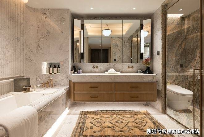 行政主卧套房空间,空间包含双开门+独立玄关+男女双衣帽间+迷你吧+卫生间+梳妆台书房,面积50余平,这种尺度感和舒适感在市面上非常少见。