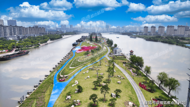 楼下不仅环绕着运河、水系,更有通吕绿廊景区、分水岛公园,直面水、园、岛环抱而成的多重生态景观面,有看不尽的繁花与绿意。
