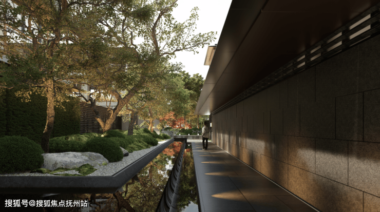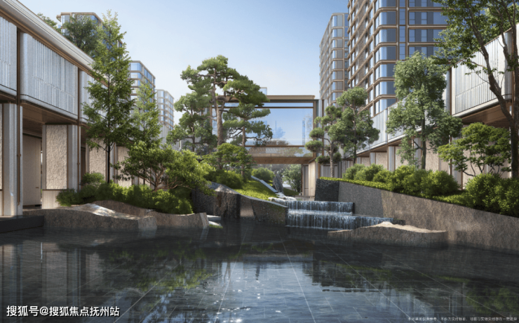 它告别了传统社区在局促空间里“造景”的束缚,转而以“规划一片生态”的思维,将约6000㎡的滨水绿带、近3000㎡的下沉庭院,以及建筑之间广阔的间隙,全部转化为景观的舞台。