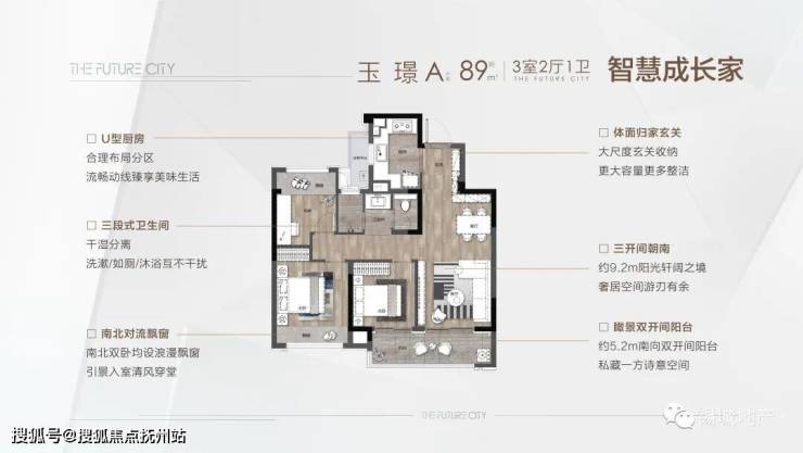 玉 璟 | A户型 | 建筑面积约89㎡ | 三室两厅一卫