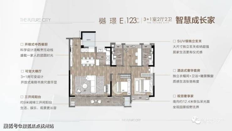 樾 璟 | E户型 | 建筑面积约123㎡ | 3+1室两厅两卫