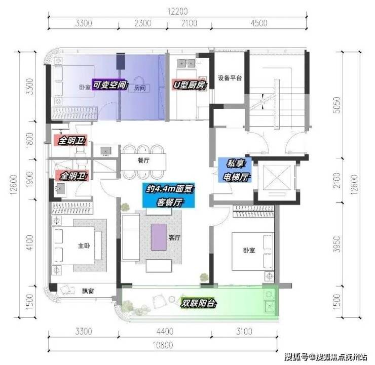 户型创造性的设计成了【边套】,销售电话:186-6709-7609√√【微信同号】除了【独立电梯厅】和【双明卫】外,【约4.4m的LDK等面宽空间】和【北侧两房的高可塑性】,是有别于市场同面积段产品的大优势。