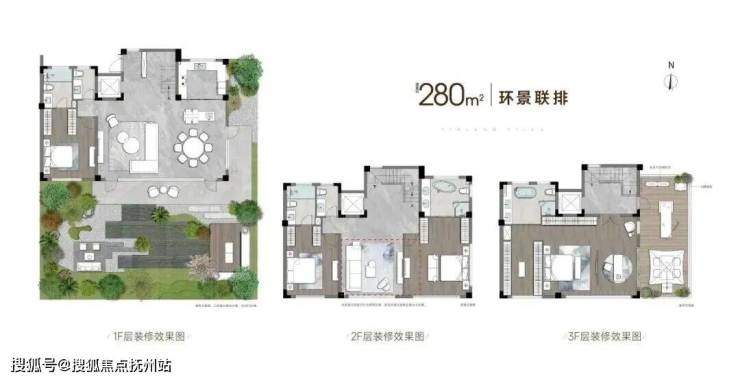 建面约280平的环景联排,超阔横厅+超大庭院+星空露台等超享空间。一层超阔绰大横厅,三层超大星空露台,豪横气质。