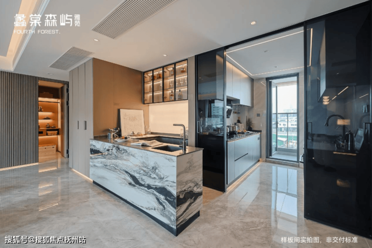 室内规划多重收纳体系,入户礼仪玄关,搭配多功能储藏间,承载含蓄内敛的归家礼仪;厨房巧妙设计27处隐藏式储物系统、12个魔法空间设计,开启秩序诗学。