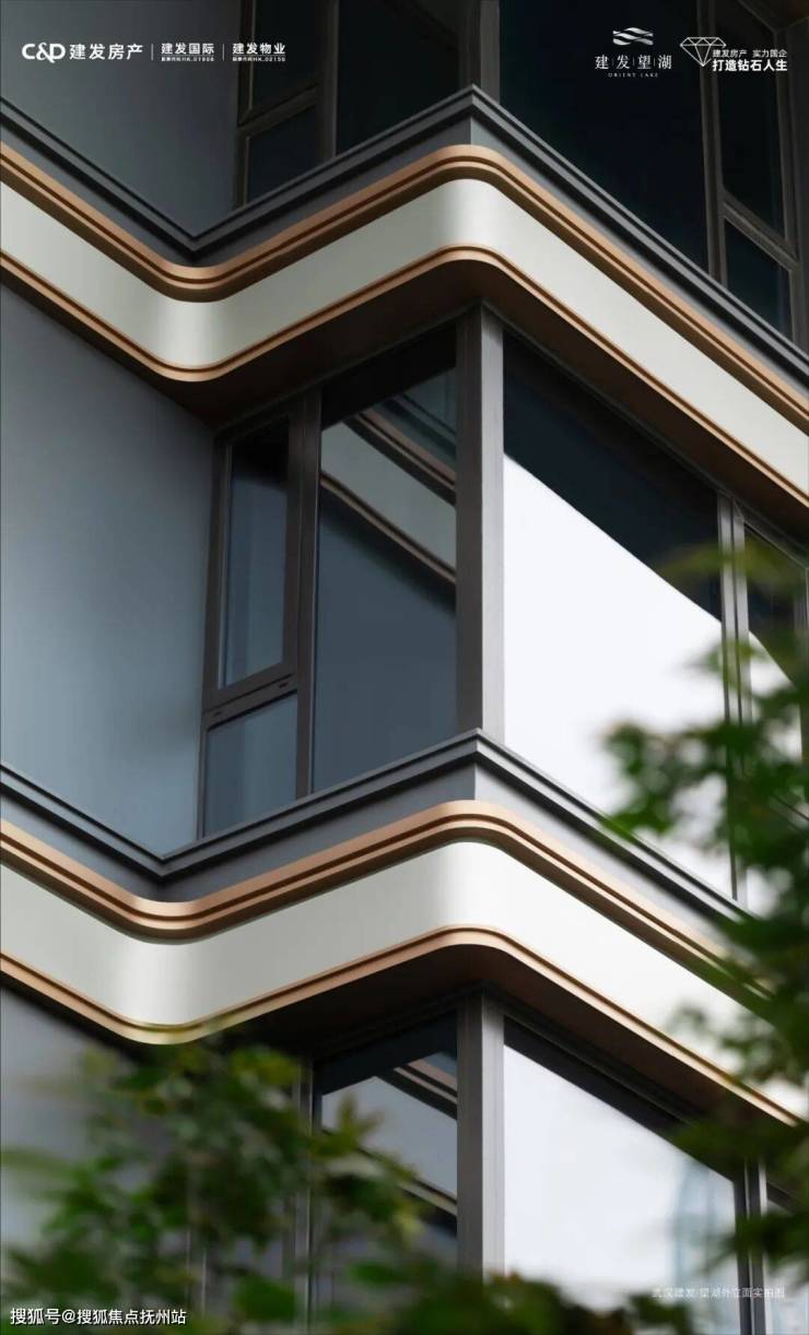 建发·望湖的建筑立面采用铝板及石材,主体立面以水平线条为框架,取法华夏都城的建筑礼仪,如翼轻盈的飞檐塔冠,挑起一线沙湖的天际脊梁,展现出专属于沙湖的东方美学,焕新武汉建筑封面。