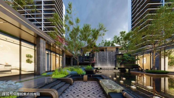 而下沉式庭院的设计,更是将室内空间与户外景观完美融合,为业主带来别样的居住体验。下沉庭院内,水景环绕,绿树成荫,阳光洒落,打造出一个充满诗意的休闲空间,让业主在繁华都市中也能享受艺趣横生的度假体验。