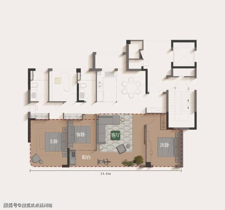 建面约155㎡户型,重新定义改善生活。全明独立电梯厅,随着阳光与风景入户,归家尽显尊崇;约14.4米南向巨幕面宽,非凡尺度,引光入室;LDKB超大复合公区与双联阔景阳台相连,打造出家庭社交、休闲、娱乐的超级主场。主卧更配置270°环景套房,成为主人专属的观景台,将生活的仪式感与舒适度推向极致。