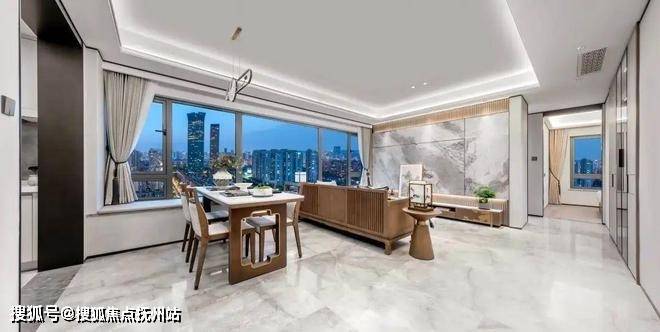 客厅不仅是促膝长谈的会客室,也是一家人茶余饭后的生活主场。建发大家·文澜府建面约91㎡户型,做到了市面上同户型少有的约5.7米超大横厅,不仅扩大了公共空间的利用率和通透感,还能同时满足社交、聚会、亲子等需求,堪称多功能的“家庭剧场”。