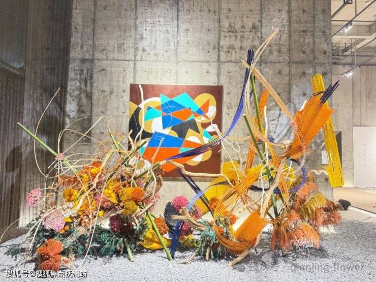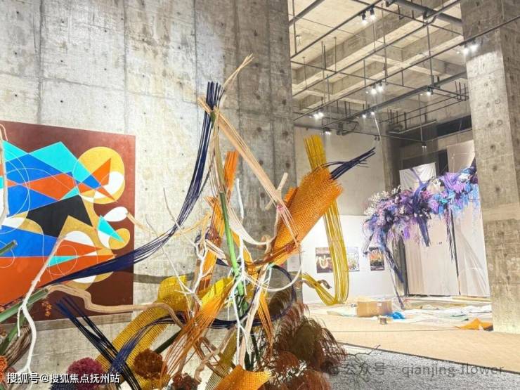 千景老师在上海举办过多场花道展,多数是在美术馆及高级商场。这次不同于以往,原汁原味的水泥钢筋工业风,10米高的大堂空间来展示花道。勇于挑战和创新的千景老师欣然答应。经过前后1个多月的努力,创作出了一批新颖独特的作品,有从空中垂吊下来的巨作“万花镜”,有铺在地面的巨作”莫奈之梦“,作品得到了完美的呈现,展现出草月的自由与张力。