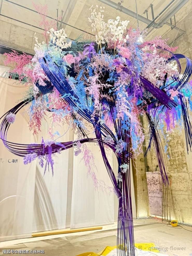 空中悬挂的宇宙花海如同都市天际线色彩斑斓。竹编巧妙支撑,如现代建筑的结构,承载着缤纷的自然梦境,又恰似一个万花镜里的景象。它可以让人们从不同角度观察和理解世界。倾泻而下的花瀑布,将艺术之美引入我们身边。天地合一,构成了一幅既繁华又和谐的艺术图景。
