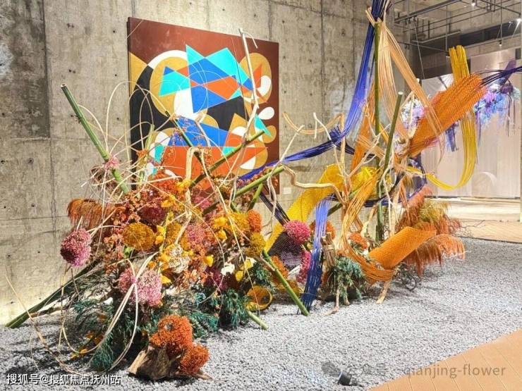 色彩的大胆运用与金属的华丽交织,绘制出一幅灿烂的花簇图景,如现代都市的繁华与活力。整个作品不仅是对材料的巧妙运用,也是对繁华与自然和谐共存的深刻思考。
