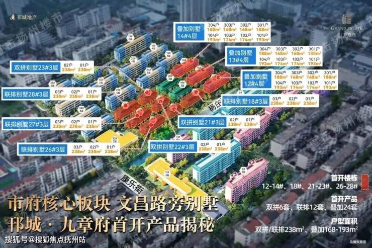 邗城・九章府荣耀首开的别墅产品,包含建面约238㎡联排/墅院,和建面约168-193㎡叠墅。
