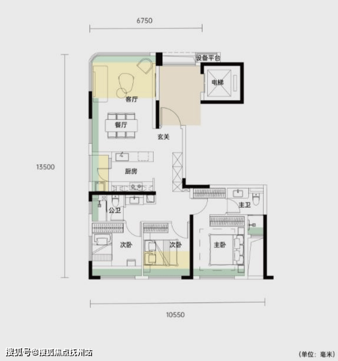 比如这套115㎡,你敢相信这个面积段能做到 边户、270°落地窗、三个卧室全朝南、独梯光厅入户?
