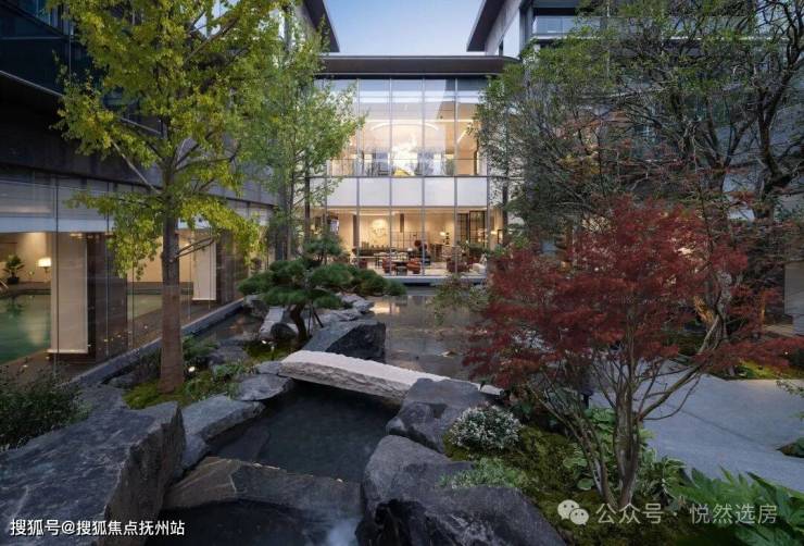 🟠[山水意境]岩涧弥香,首创立体山水庭院融汇宁波山水格局,独创绿城宁波首座立体下沉式山水庭院,金钱松、黑松、老桂花萦绕四季馥香,赏叠水瀑布、太行山石自然意趣。