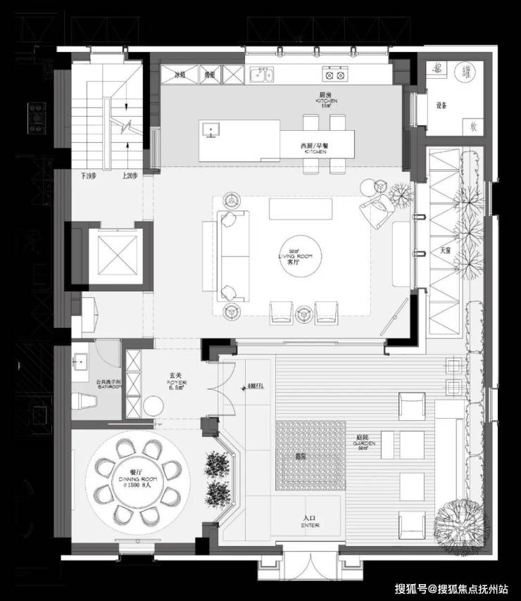 • 庭院中心布局,客厅、餐厅、卧室三面均可采光,内外相映成趣