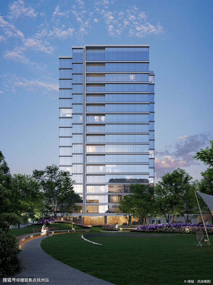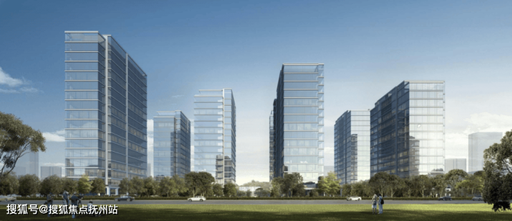 整个园区以围合式布局展开,七幢建筑借鉴中国古典园林的精髓,最大楼间距达到了63米,使得每栋楼都能享受到270°的开阔视野,仿佛是一座座隐匿于花园中的岛屿。为了与景观相呼应,园区立面采用“水晶天幕”设计,线条纤细,使建筑宛如天空中垂下的纯净湖面。