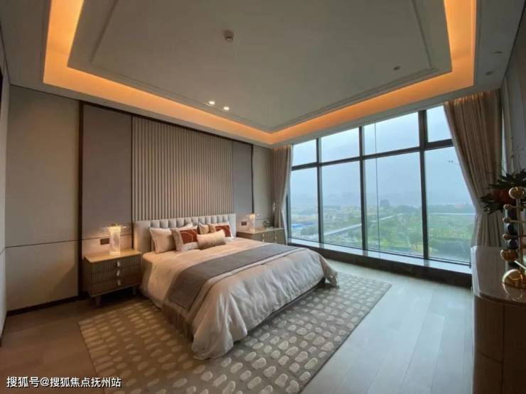于是,站在之江门样板房的落地窗前,开阔的江景一览无余。整个窗景像是一幅超级巨幕,上演着钱塘江上的潮起潮落,日月更替。横扫整个瞰江视角,一边是绵延的西湖群山,另一边是之江大桥的车水马龙,对面就是“国际滨”林立的高楼,山水风姿与城市繁华尽收眼底。