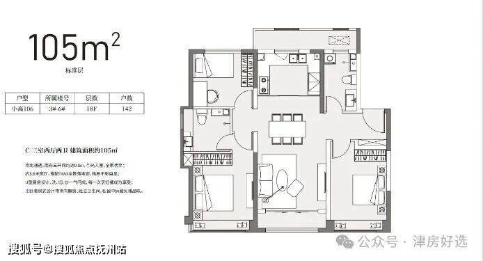 105平小高三室两厅两卫(首开)