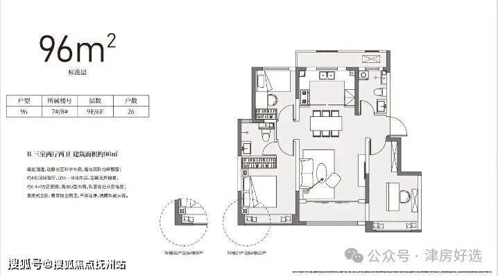 96平洋房三室两厅两卫(加推)