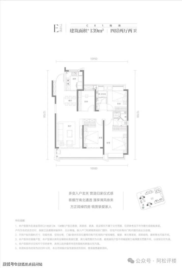 项目13号楼共46层,1个单元,3梯4户,边户有独立电梯前室,主推建面约113-139平毛坯房源。
