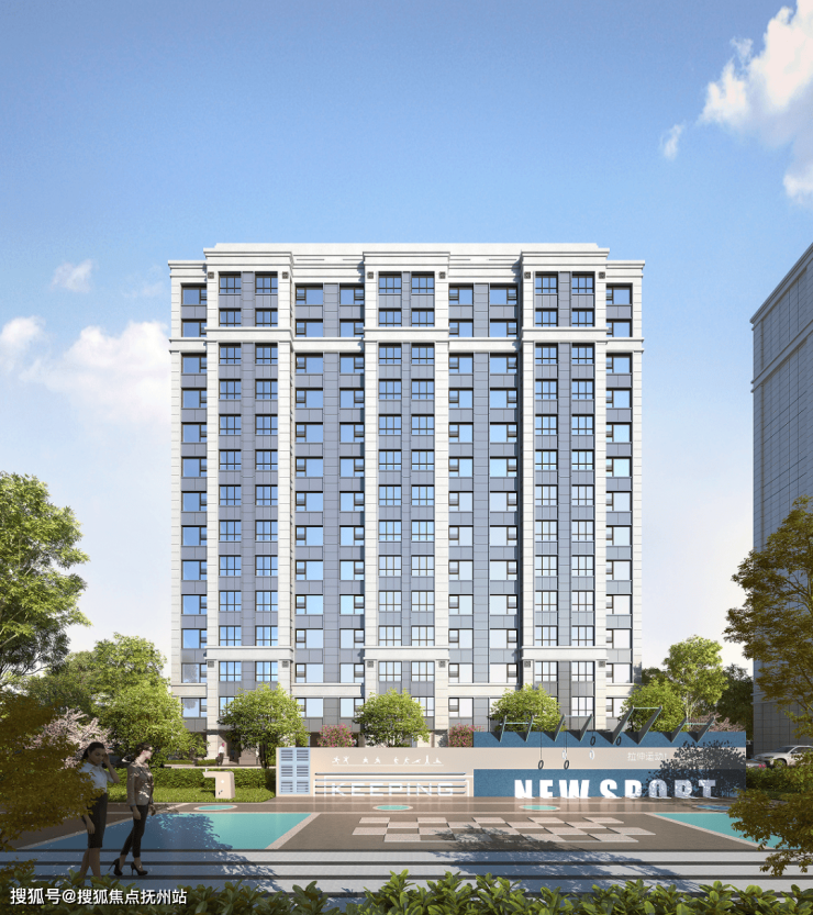 通过园林中曲径通幽的设计手法,布置景墙设计,引人入胜。社区内打造大树聚场、儿童乐园、阳光草坪、健身跑道等多个功能空间,依托架空层构建出更多的互动空间,扩展社区内的活力活动场域,为居者营造更多幸福生活的场景。