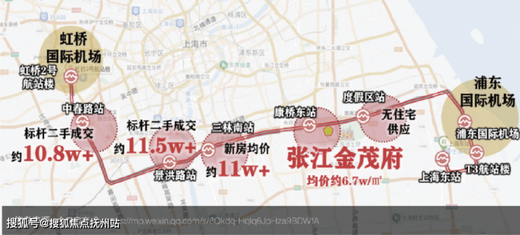 张江金茂府3.0距21号线申江南路站仅约888米(直线距离),近达11号线康新公路站,享受便捷畅行。21号线一期工程暂定于2026年12月底开通初期运营,21号线一期东延伸工程暂定于2027年6月底开通初期运营。(数据来源:进击的张江)在建的21号线,几乎将浦东重点产业、城市副中心全部串联,能级相当之高。未来,通过21号线1站即可换乘市域机场线康桥东站,高效对接上海虹桥枢纽和浦东机场两大核心交通节点!