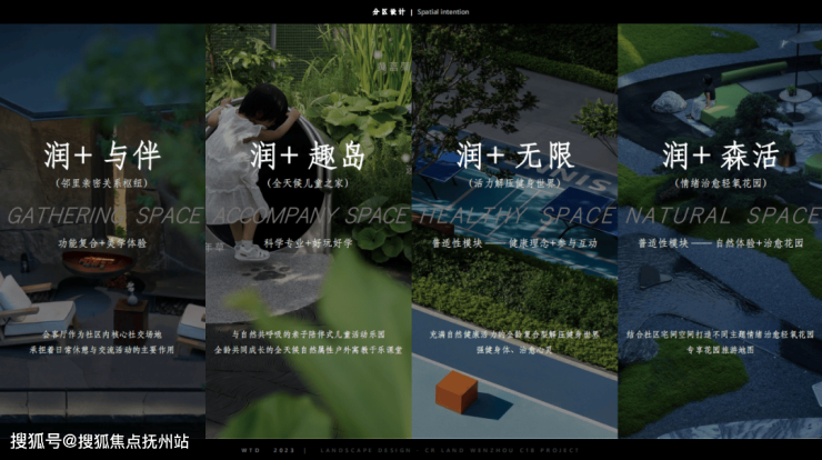 景观设计上,特邀纬图设计创始合伙人、设计总裁李卉,循迹江水文化为灵感,将森系造景手法与当代园林相结合,勾勒都市生活绿岛。 在近4.7万方的园林中,规划三重润心归家体系,打造以“润+与伴”、“润+趣岛”、“润+无限”、“润+森活”四大模块为主题的十二重森系园境。