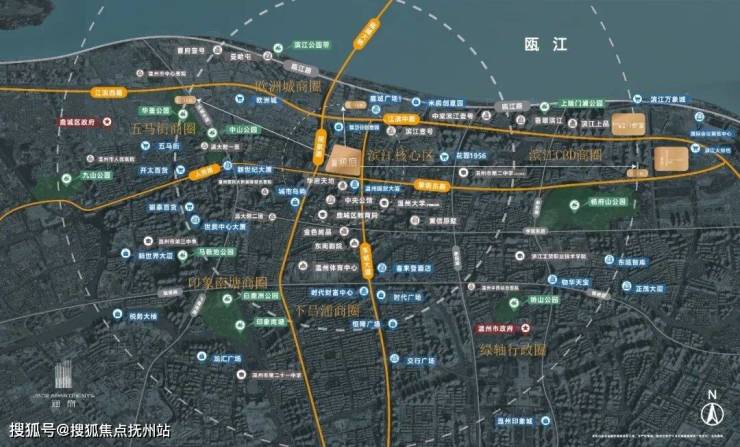 主干道:车站大道、江滨中路、瓯江路等城市重要干线环绕,通达四方。