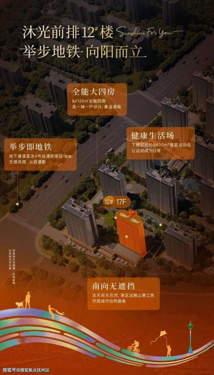 前者,是眺望山水的臻选楼座;12#楼位于园区前排,不仅近达地铁,无惧风雨、自在通勤;南向更无遮挡,全天采光充沛,高区可眺望山景及江景,尽揽城市自然画卷;下楼即达约5400㎡家庭运动岛,让健康生活轻松实现;17层的亲地高度,亲近自然,舒适生活。
