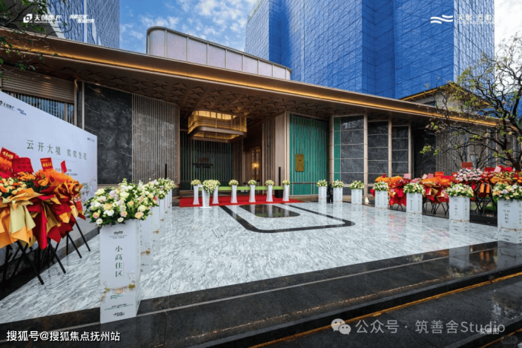 天创云和奕的大门,光是第一眼就足够惊艳——约60米超宽尺度,打破常规住宅大门的局促感,成为汉阳大道上极具辨识度的人居封面。大门立面采用爱马仕同源非遗冰裂纹陶板铺陈,纹理如翡翠冰裂,温润细腻,即便废料率高、施工难度大,项目仍不计成本打磨,只为呈现顶级审美质感。利落的现代线条搭配金属勾勒,透光云石点缀其间,两侧对称水景潺潺流淌,搭配艺术装置,未入社区先显尊崇,每一次归家,都是一场充满仪式感的奔赴。