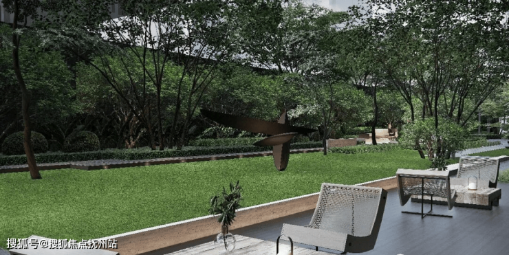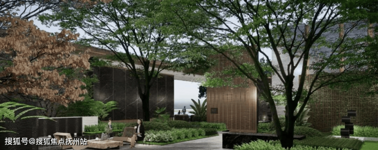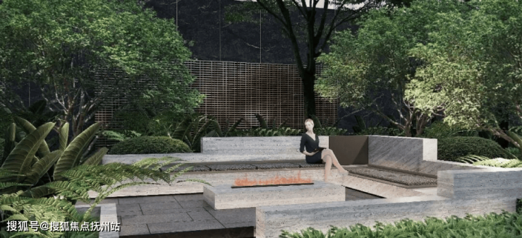 【三境|围垆词话】奢石雕塑与错落景观,形成独立的围合空间,于楼宇前营造奢享对景。密林漫步,散落的林间座椅,幽静的林下步道,疏密有致的宁静后院。