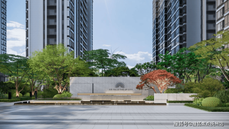 【保利·光合上城】采用 “一心两轴三门”的的趣味归家动线,结合石材、绿地、地垫编制的多样视觉地面铺装,将社区景观从热闹到安静,沿途层层推进,带来乐趣不同的漫步触感。