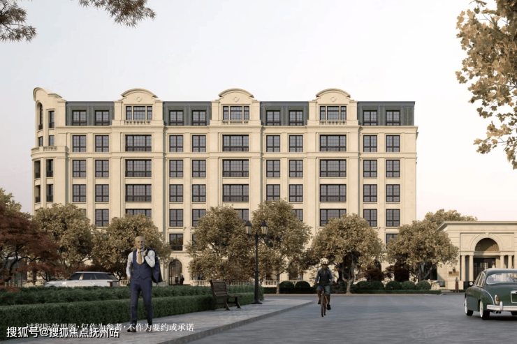 建筑构成:4栋7层法式精装洋房 + 10栋3-4层世家定制公馆,整体建筑高度控制在7层以内。