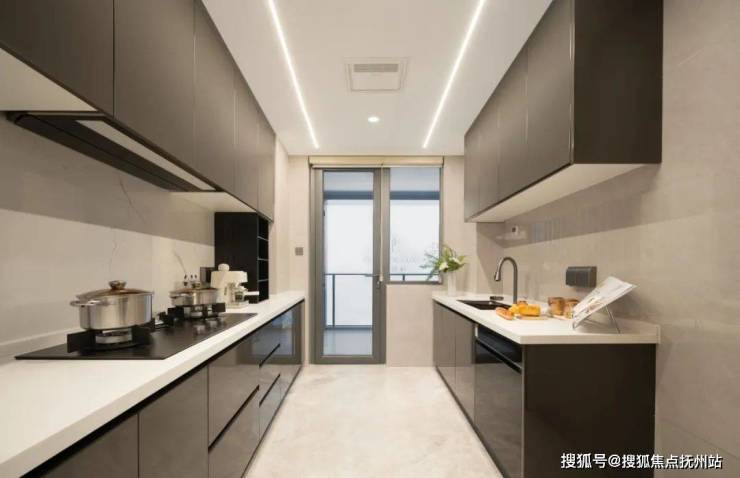 16项厨卫系统中,标配方太全隐升降款油烟机、三眼灶、15件套洗碗机。顶上有奥普凉霸,灶台有岩板背景墙,不只实用,还细致关照厨房的“清洁动线”。