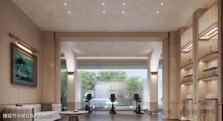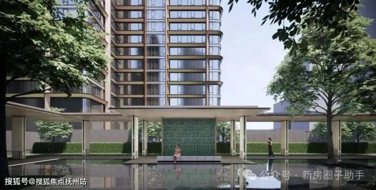 镜面水院倒影建筑美学,风雨连廊串联下沉庭院(叠泉绿台),园林即金融精英的第三会客厅。