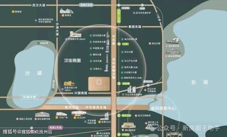 本案向南600米即是武汉唯一重奢店王武汉SKP,1.5KM楚河汉街人潮与中北路资本在此共舞,窗景即顶奢文明棱镜。